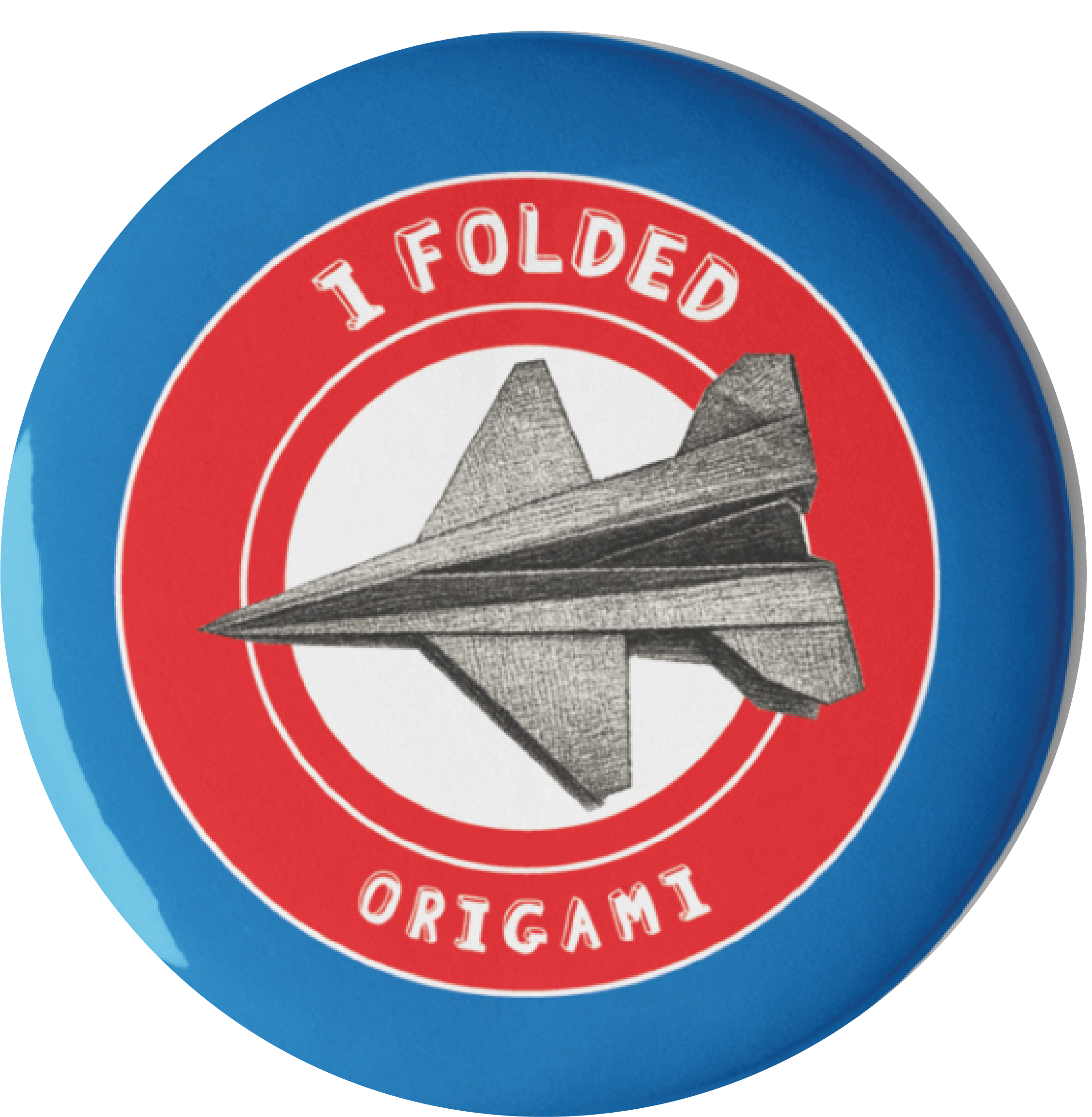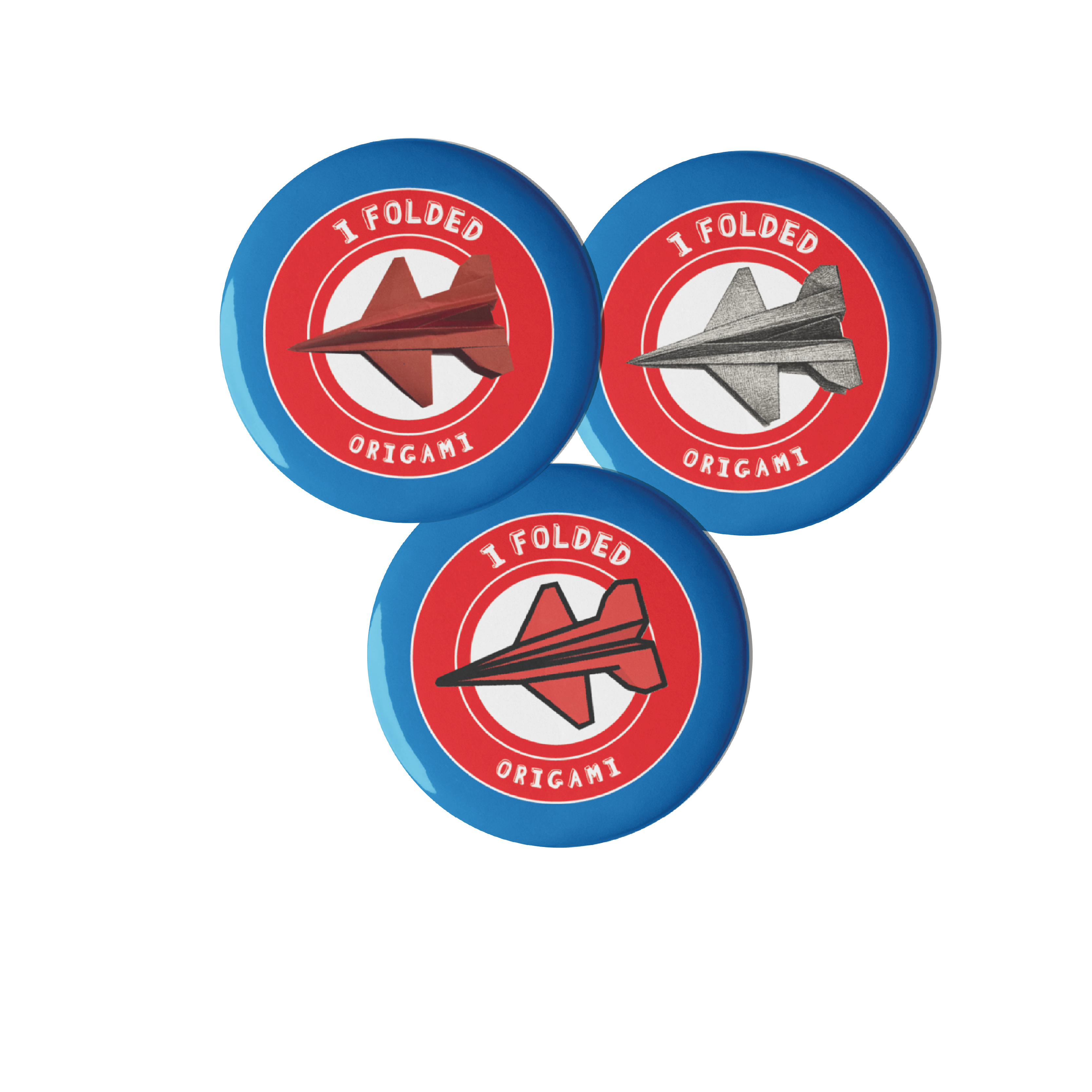 These buttons capture the excitement of completing an origami aircraft. Their bright colors and clean shapes appeal to both children and adults. Additionally, the “I Folded” text highlights progress and encourages continued learning.