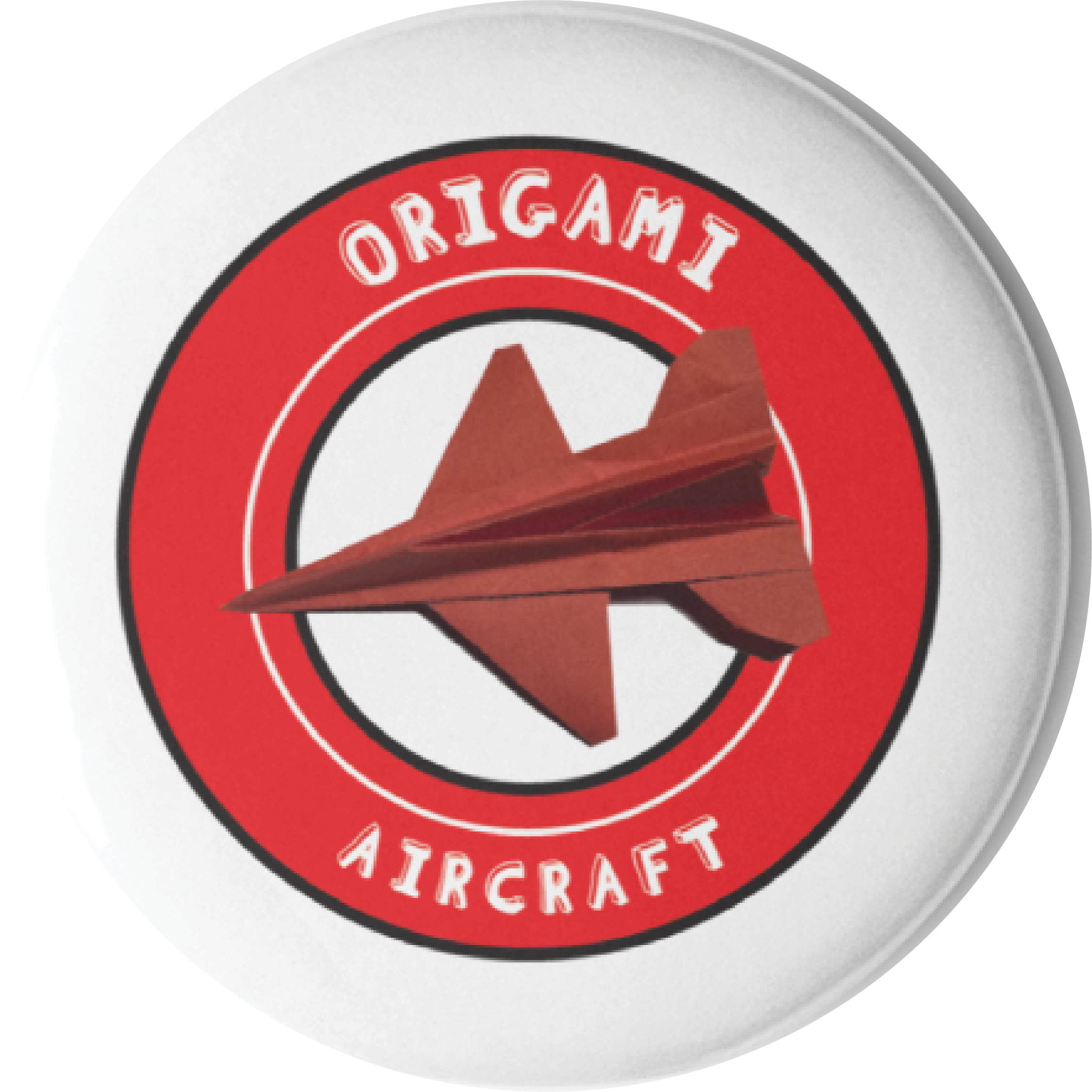 A red ring with white inner space surrounds the jet illustration. The word “Origami” appears on top, while “Aircraft” appears below the central emblem. Together, these elements resemble a badge or emblem commonly seen on pilot gear. The white border frames everything cleanly and helps the artwork stand out.